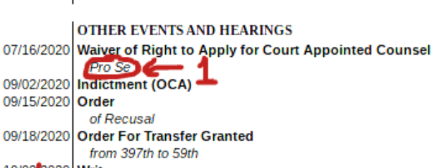 The 7/16/2020 Waiver to Right to Apply for Court Appointed Counsel came after many attempts by the Grayson County, Texas court administrator to have me fill out an indigency application and have the court provide counsel. After I waived my right and was resolved to represent myself as it was the best decision for my chances of being treated faily in my opinion (I have represented myself successfully in civil court in this same county before) I assumed the issue was over.